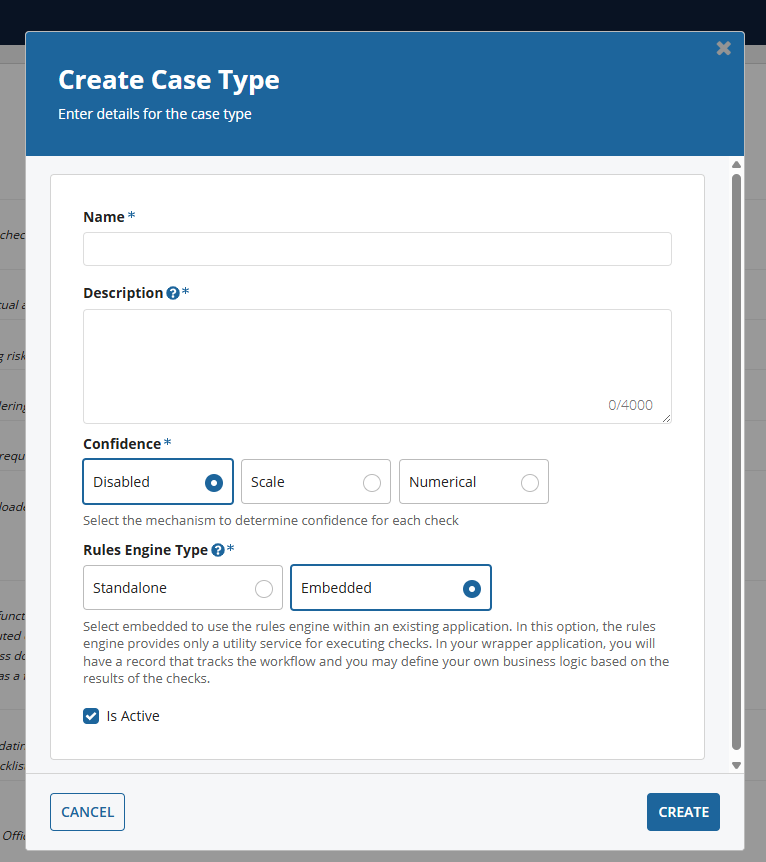 Standalone Mode - The rules engine provides the full life-cycle of the case. You will use the provided Rules Case record in this application as your primary record to track the workflow. You will define when the case routes to a human using one of the provided options and use the UIs in this application to close the case.