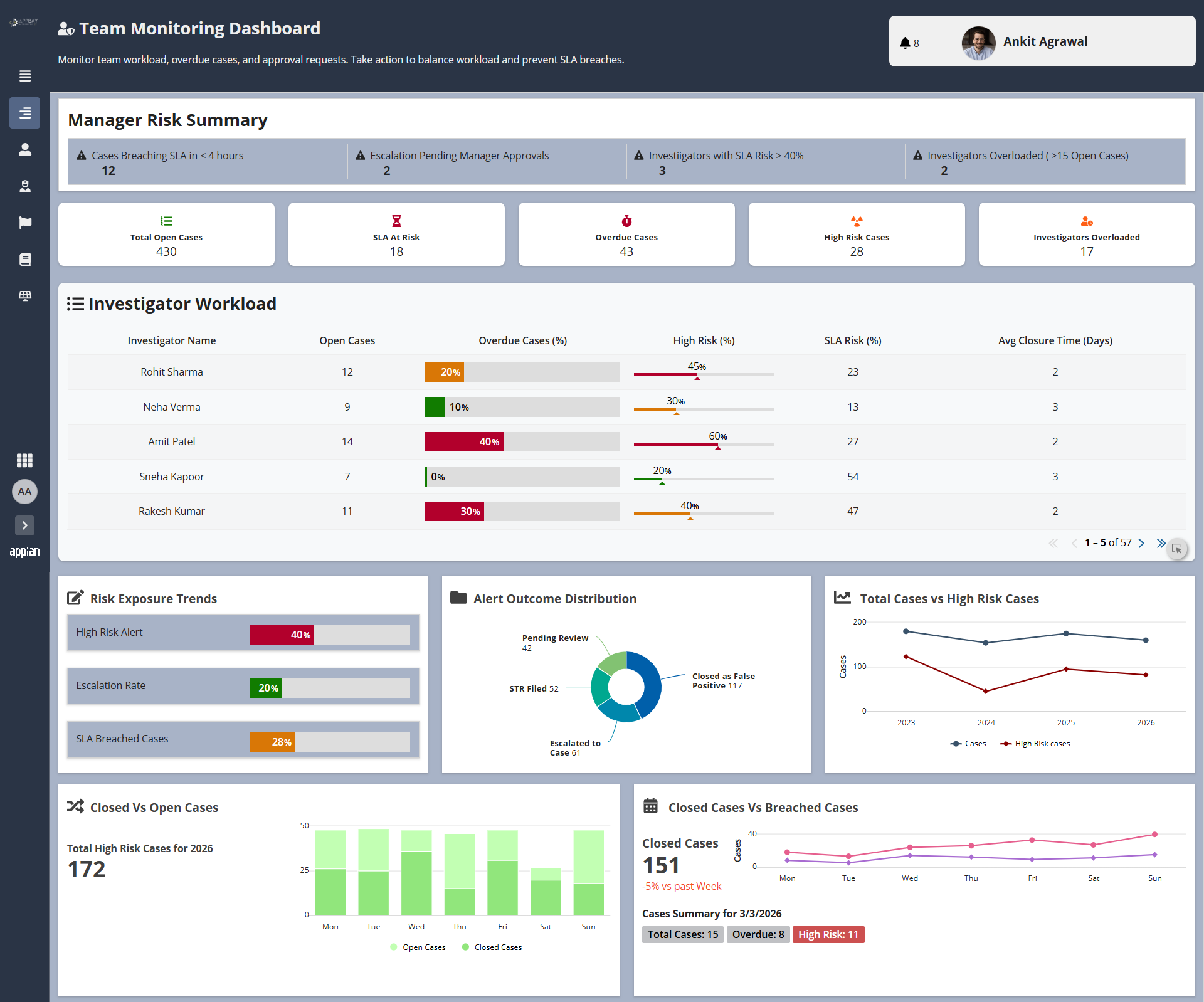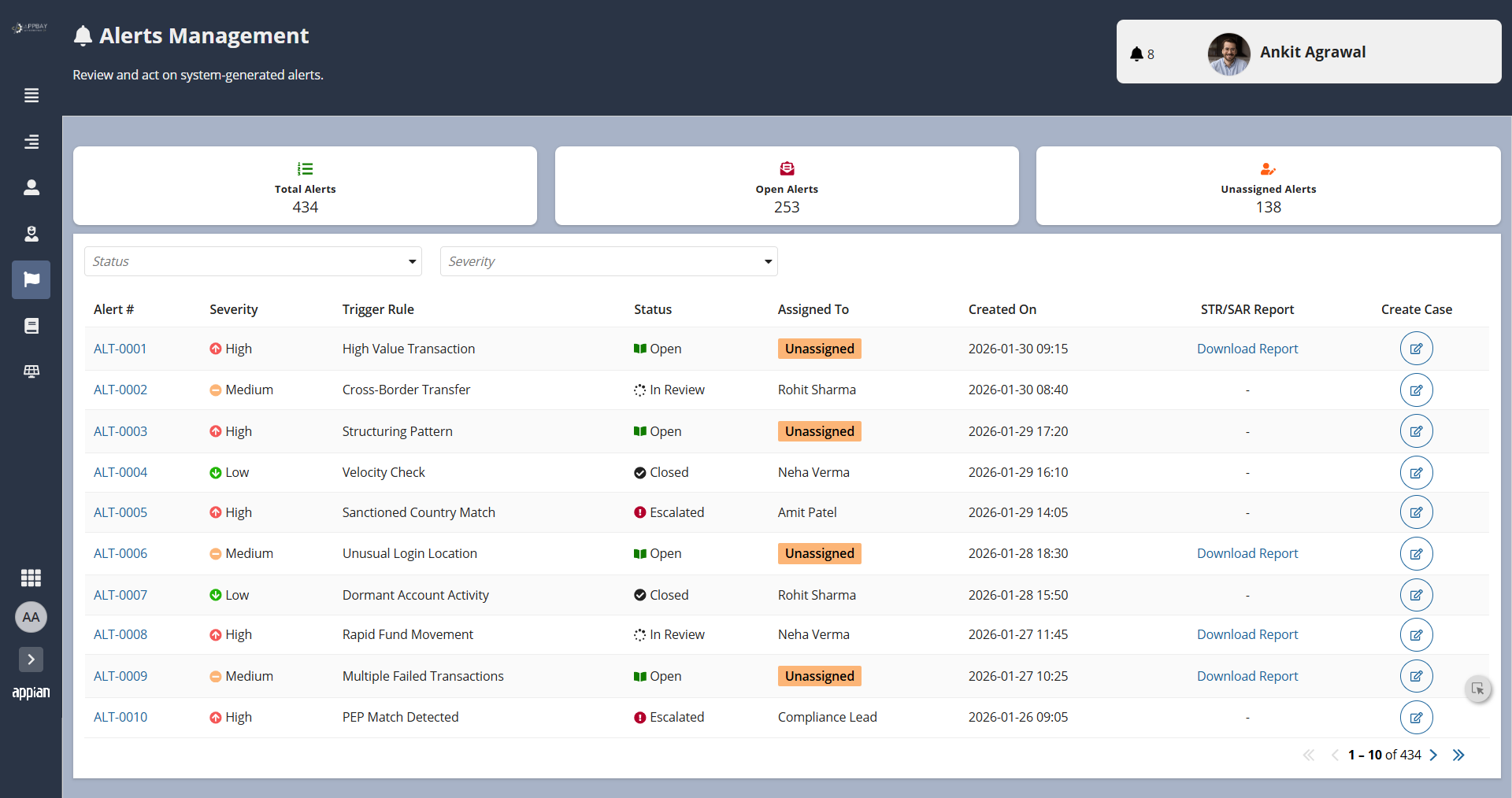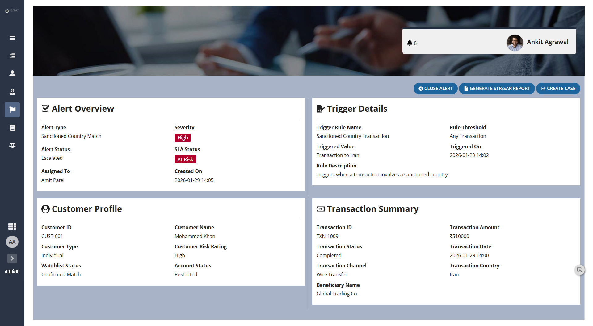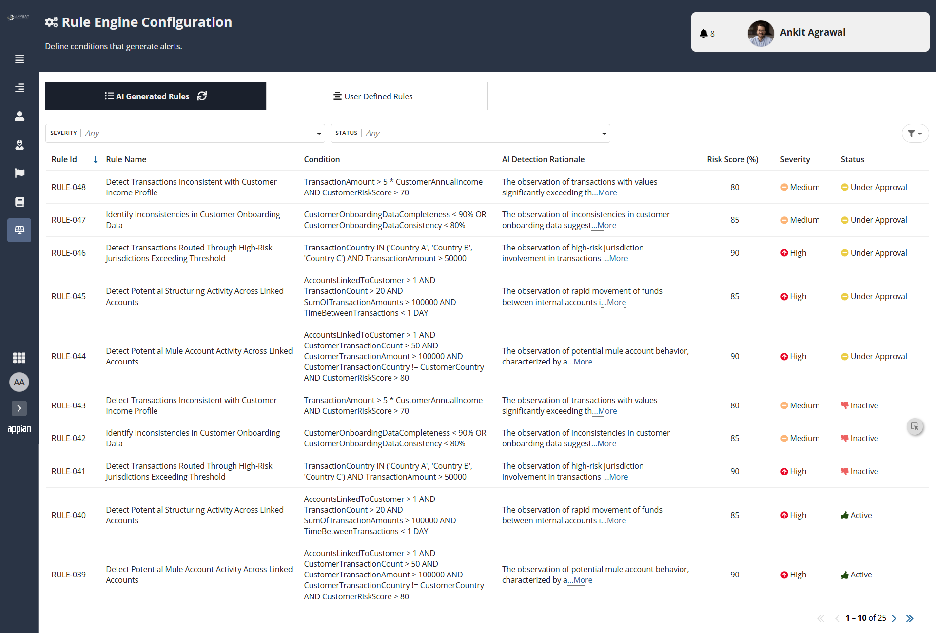 FincrimeIQ directly addresses these challenges through a unified, AI-powered Appian platform that combines admin-configurable rule management with self-learning AI capabilities. The system continuously monitors transactions against defined rules, auto-generates and closes alerts, and creates investigation cases intelligently. Crucially, Appian AI Skills and AI Agents analyze historical case data, evidence, and conclusions to automatically generate and refine detection rules - creating a self-improving compliance engine that gets smarter with every investigation.
