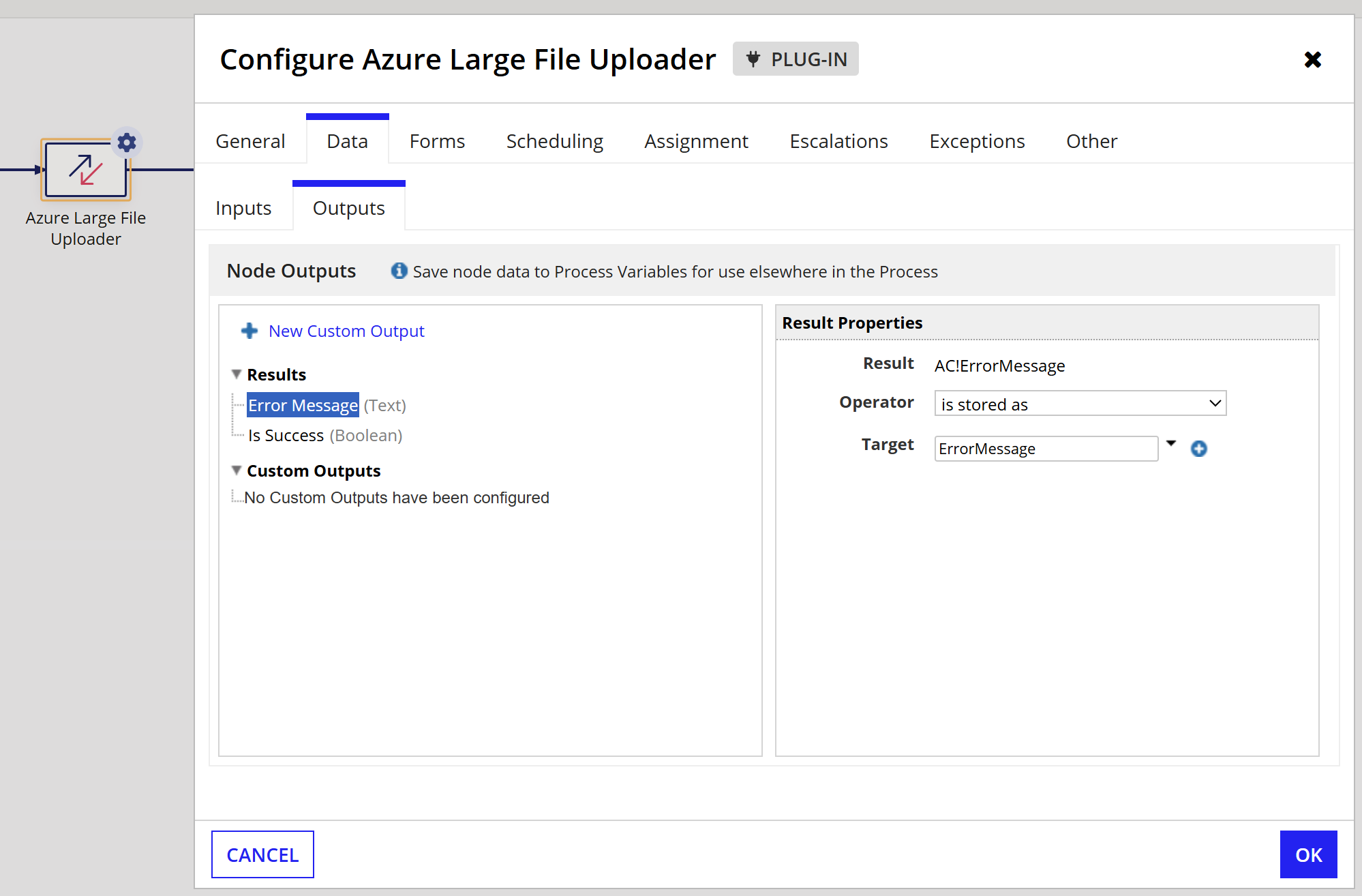 Organizations frequently need to archive massive files—such as high-resolution PDFs, video evidence, or large Excel reports—from Appian into Azure storage for compliance or long-term retention. However, standard Appian HTTP integrations fail on files larger than 4MB due to Azure's strict REST API limits, and attempting Base64 conversions often causes OutOfMemory spikes on the Appian server. This plugin solves that bottleneck, allowing businesses to securely and seamlessly migrate gigabyte-scale files into Azure without crashing the application server or writing sensitive data to temporary local disks.