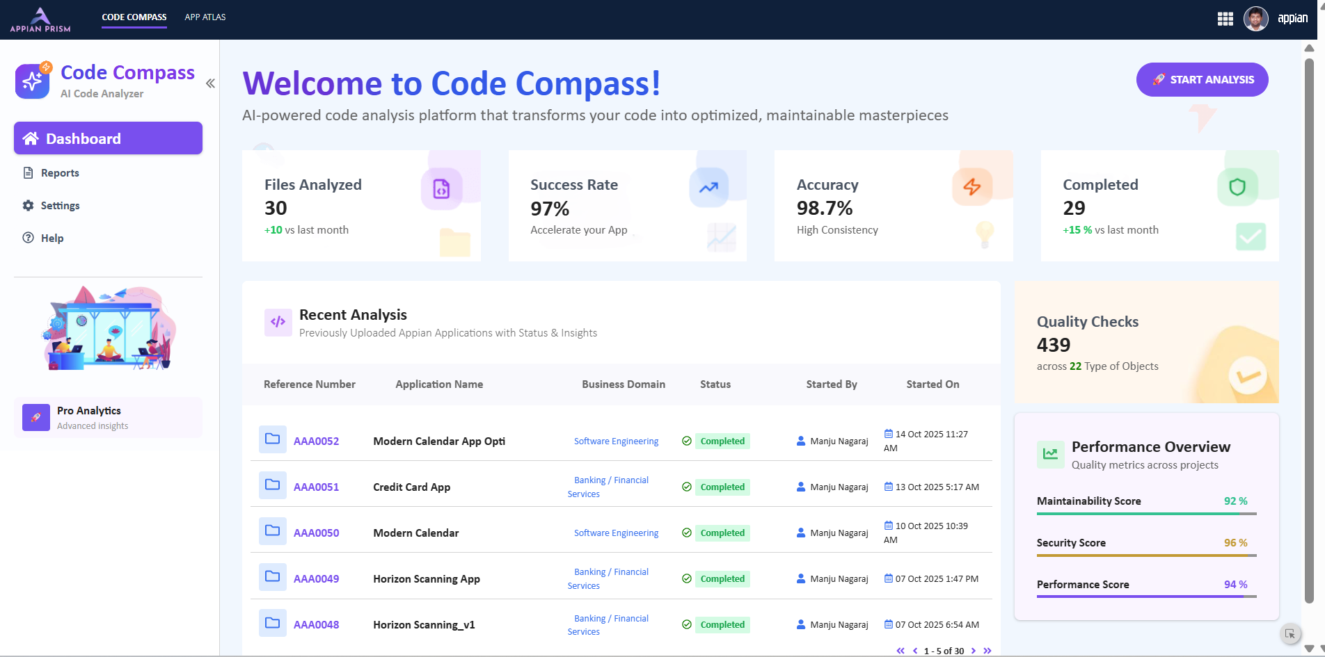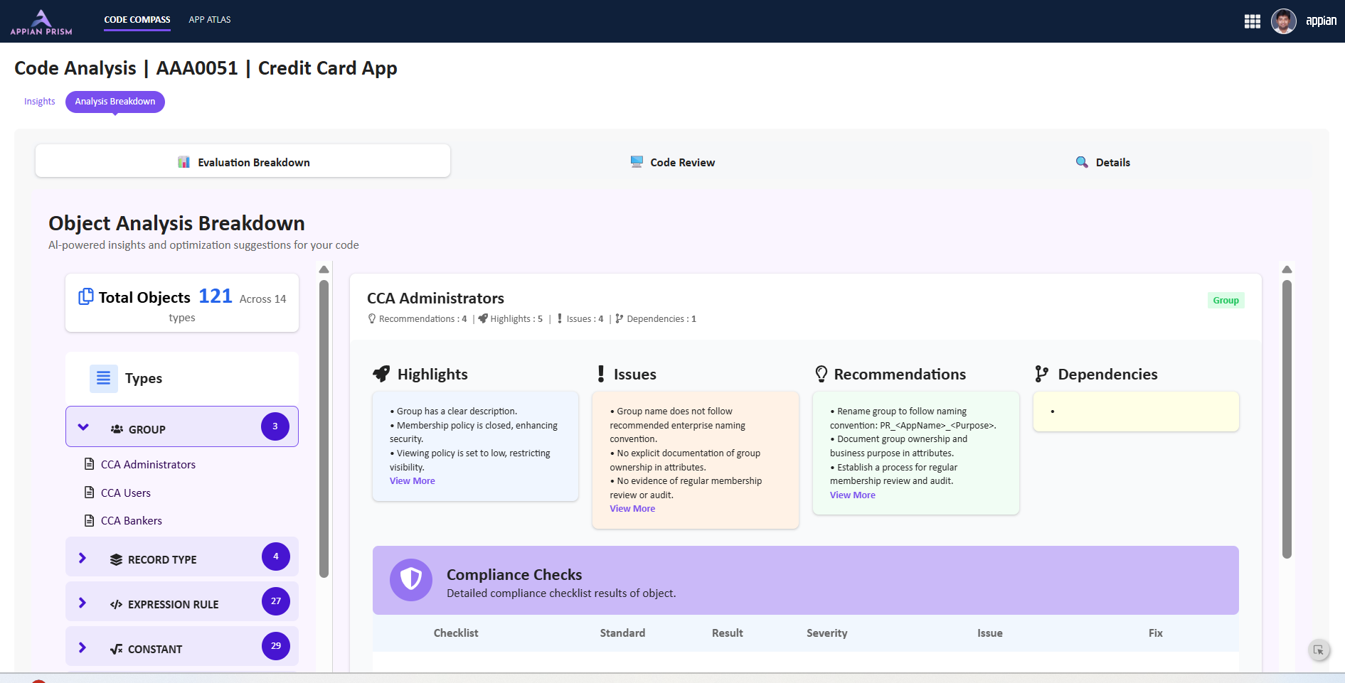 Maantic Code Compass integrates Appian automation with AI-driven analysis to deliver complete visibility into application quality: