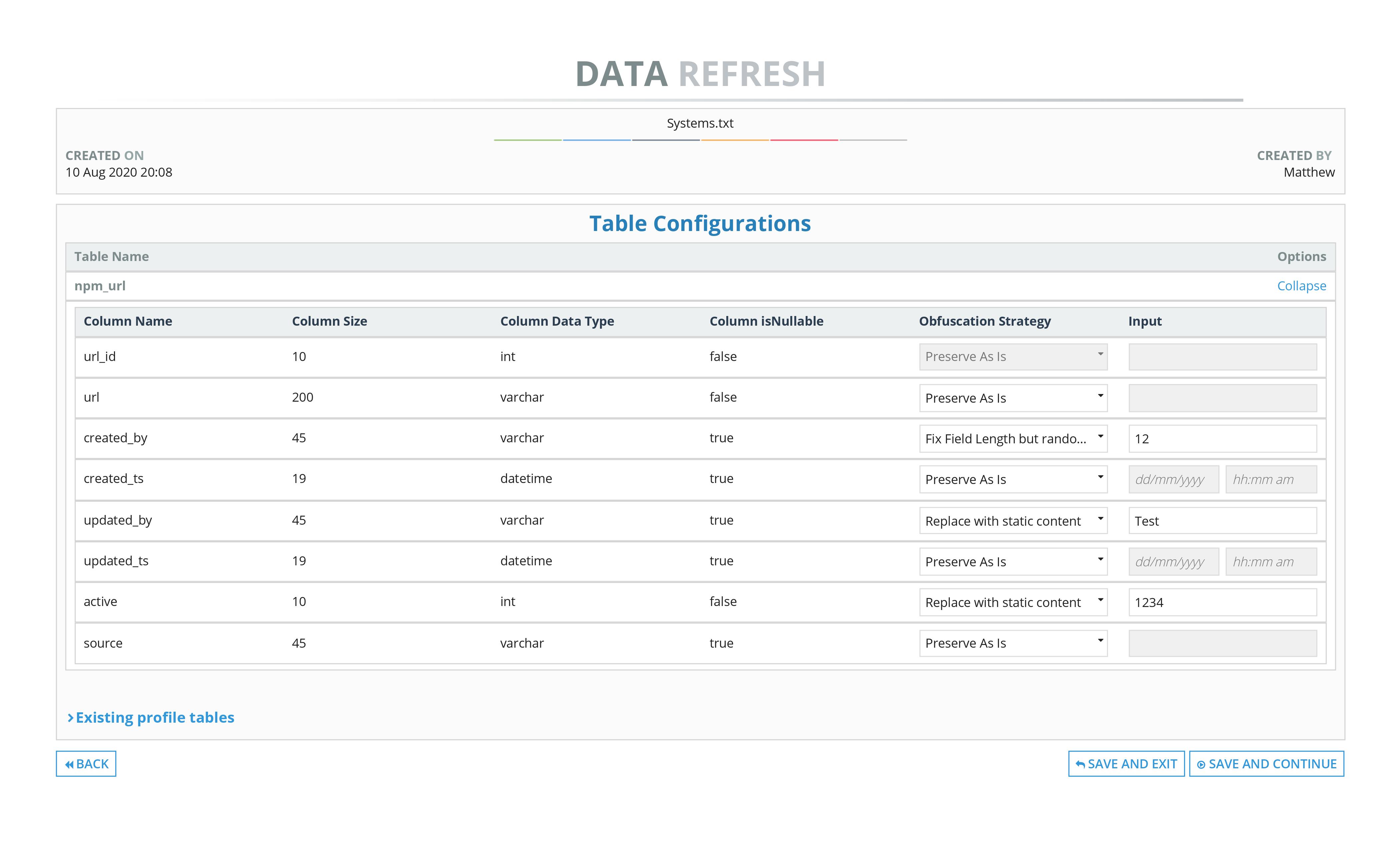Once installed, an export profile is required to be configured, comprising table selections and obfuscation configurations. After nominating the tables to be included in the profile, an array of obfuscation methods are made available, including fixed-length randomisation, preserved-length (respective to the column definition) randomisation, or substitution with a static value. These methods are implemented at a column-level, ensuring sensitive production data can remain confidential, whilst still migrating realistic, manageable values.