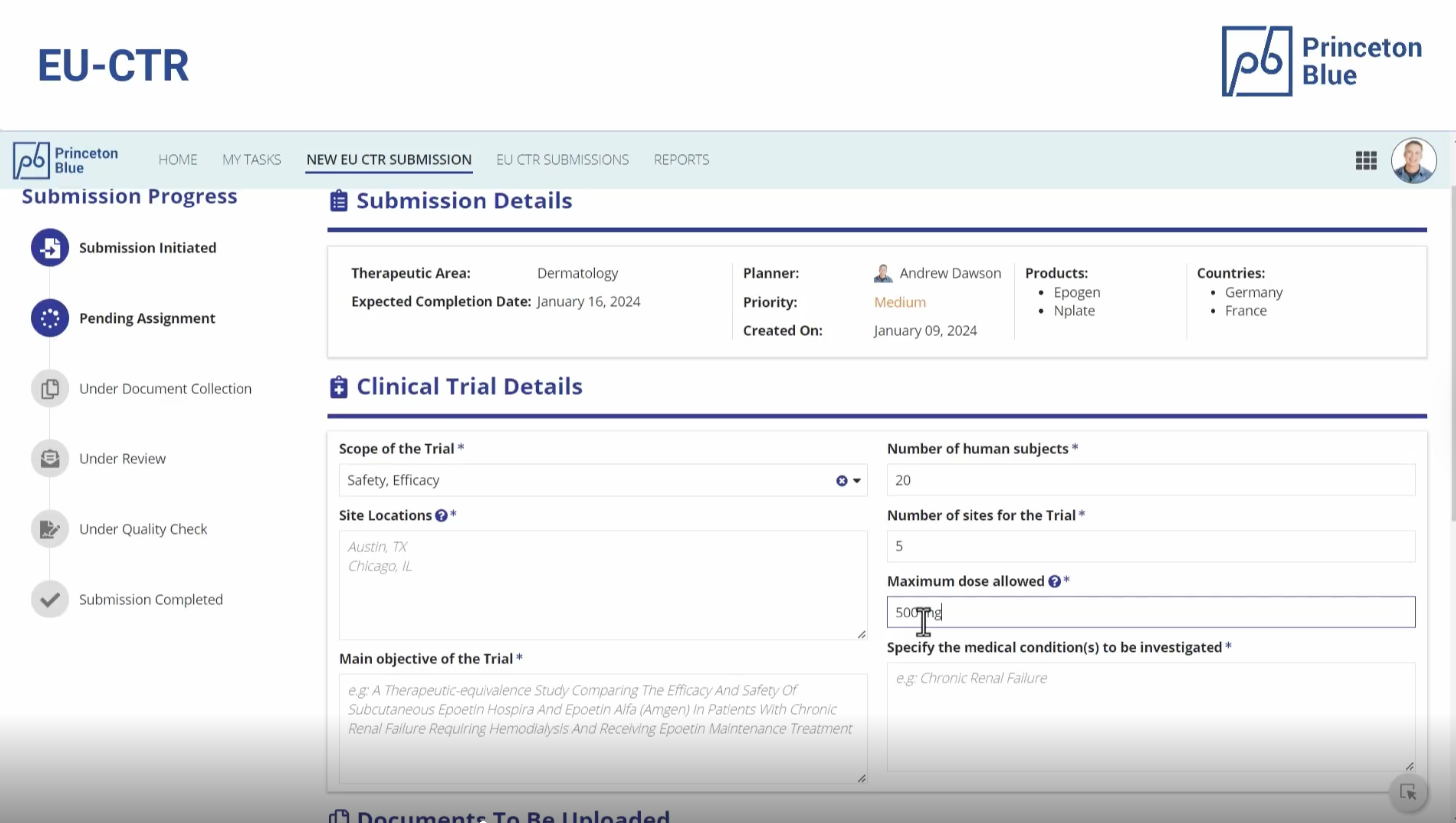 In January 2022, the European Union introduced a new Clinical Trials Regulation (CTR), repealing the earlier Directive 2001/20/EC, or CT Directive (CTD). The new EU-CTR regulation aims to harmonize the process of assessment and supervision of clinical trials throughout the EU. All Pharma companies operating in the EU must comply with EU-CTR for all new trials. Each submission requires careful identification of country-specific documents, and a workflow cycle that spans creation through approval.