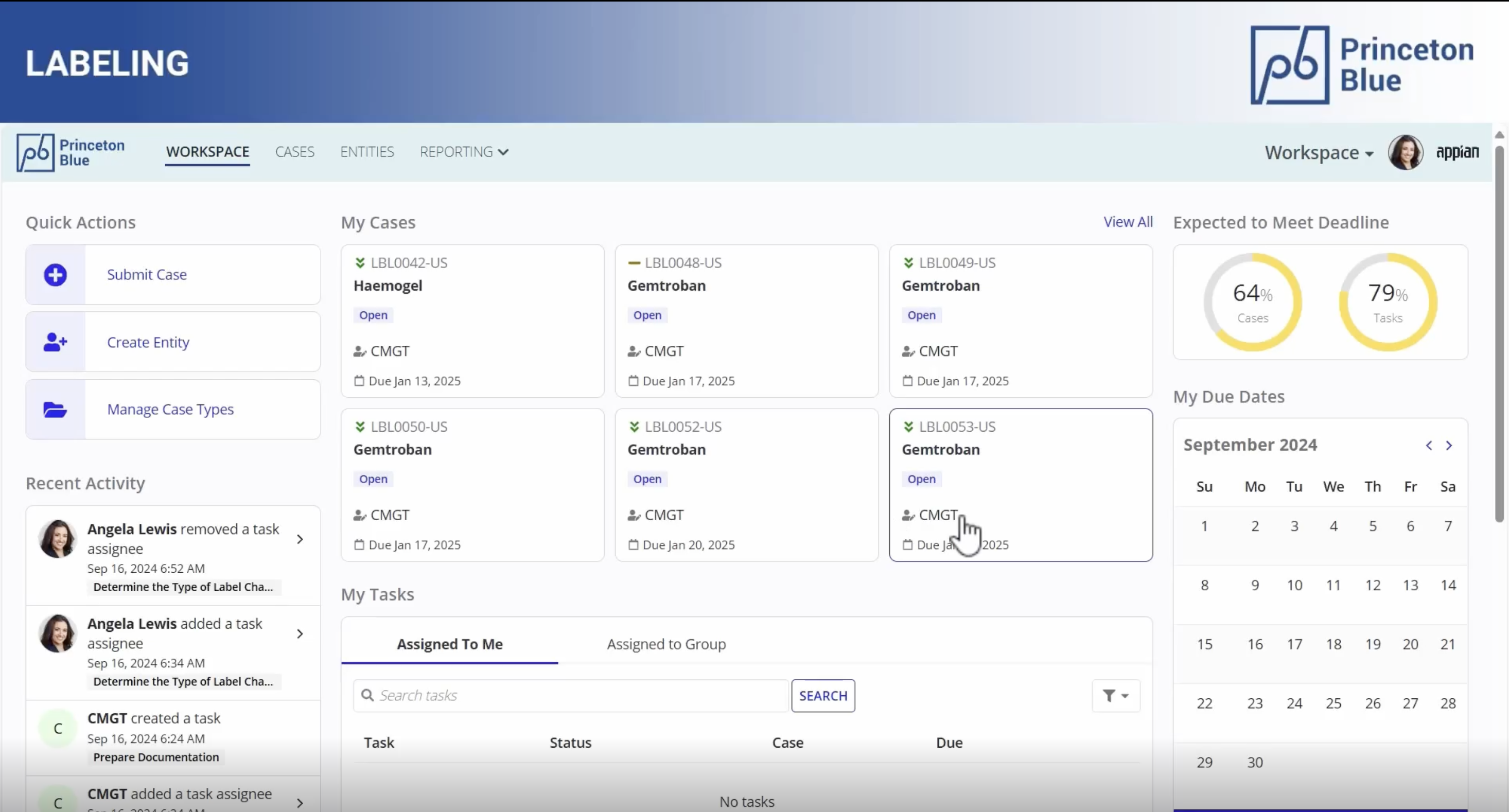 The Labeling solution creates and manages label changes and provides real-time visibility into the global label change process. It empowers individual countries to customize and manage their own workflows without local Appian development expertise using Case Management Studio. It augments your existing systems such as Veeva by leveraging the process automation, AI and Data Fabric capabilities to streamline the label change management from end-to-end.