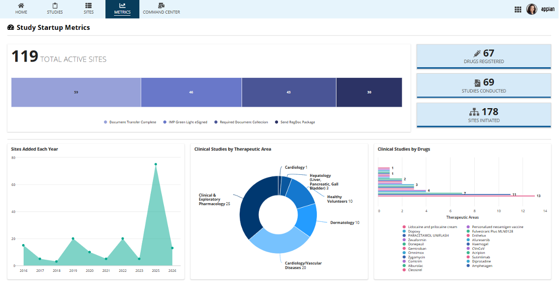 The Study Start-Up solution uses Process Automation and Agentic AI to bring structure, intelligence, and transparency into the entire SSU lifecycle. It automates the generation of complex SSU documents, adapts to country-specific regulations through configurable business rules, and proactively manages milestones and risks using AI Agents—delivering faster, more compliant, and scalable Study Start-Up across global clinical trials.