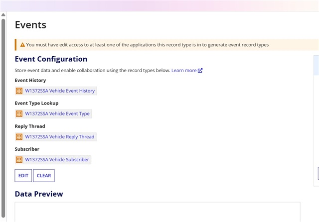 I am writing to ask for the best workaround for this issue where, in Community Edition, the generate events "wizard" usually fails with this message, "You must have edit access to at least one of the applications this record type is in to generate event record types". Appian Community Edition Support <communityedition@appian.com> responded to me saying that engineering is aware and working on a solution. The workaroud suggested is to manually create the record types and press the "Use Existing" button. This gets me part of the way.