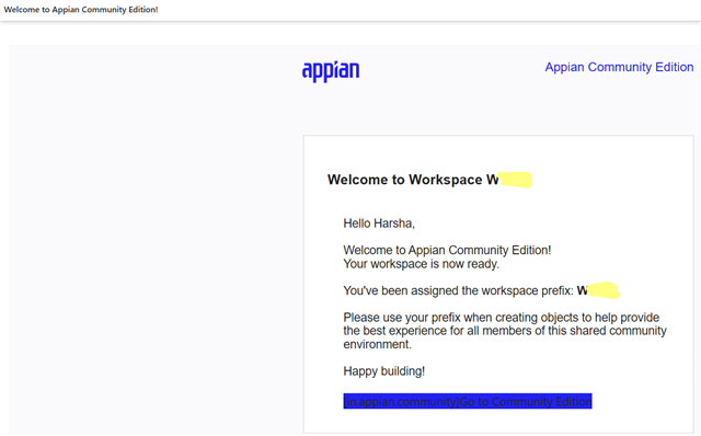 If you have done all the above and have a active workspace then drop an email to CommunityEdition@appian.com so they can look on their end and resolve the issue causing this behavior.