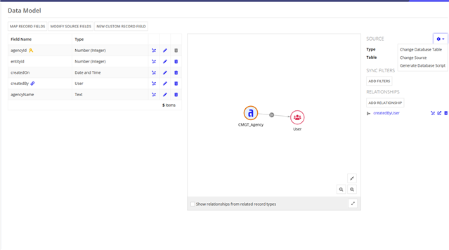 How can I navigate to the db table corresponding to CMGT_Agency? These are the options I see in source settings.
