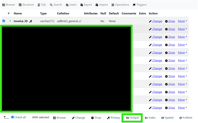 Please check if you have access to cloud Database.Navigate to table, Structure and select the column and Hit on unique.