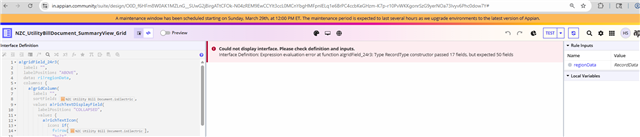 It is not a code issue but there seems to be an issue in the Appian Community Edition as the same error is shown in all interfaces having recordData configured as data for gridfield(). Other grid having local variables with list of record Types are working fine though!