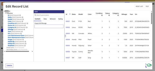 Build an Application: Step 5 Missing Delete, Move, Add column in Edit Record List