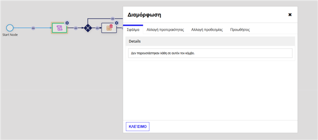 When I click on the node where it stops, a pop‑up appears saying: "No errors were encountered at this node."