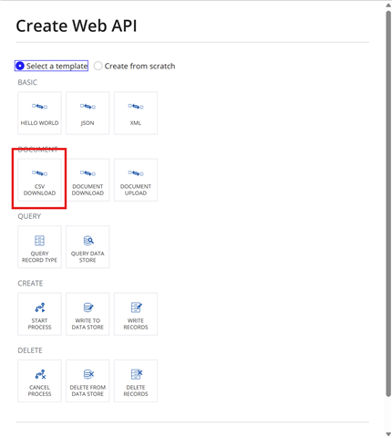 Create a Web API using the attached CSV Download template, which queries data from the Record Type and generates data in Excel format. Then, use the same credentials in an Integration object to consume this Web API, and parse the response body to convert the binary data into an Appian document.