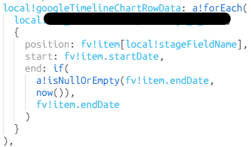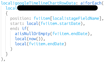 I'm using the Google Charts Component a!googleTimelineChartField, and am wondering if there is a configuration I'm missing or a better solution to a timezone issue I've come across.