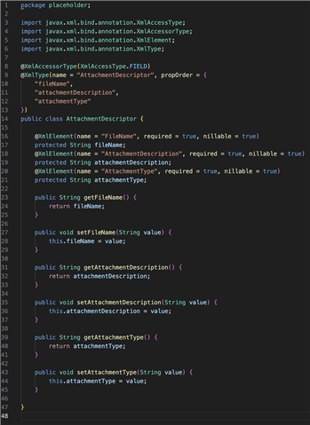 -AttachentList.java already uses @XmlElement(name = "Attachments") on protected List<AttachmentDescriptor> attachments;.