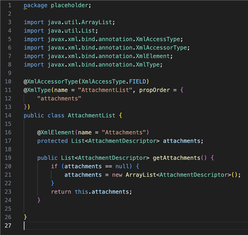 I had also tried making AttachmentList.java use propOrder = { "Attachments" }, in case propOrder was case sensitive but that did not work either. Do you have other ideas?