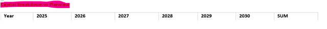 Transpose your data to column-list XML (<years><year name="2025"/>...</years>), use @before-cell[#list doc.years as y] for column headers, @before-row for data rows.