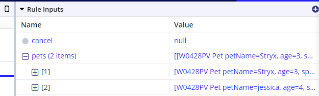 2) Check if the process variable for "pets" is an array of W0428PV Pet objects.
