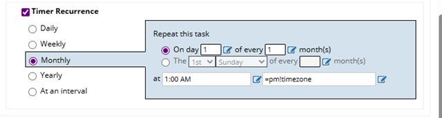 I'm trying to initiate a Process Model on the first day of each month, but I'm encountering the following error: