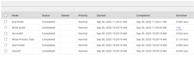 Here once action is completed we re query  the audit data in the interface which is set in refresh variable and refresh after "RECORD_ACTION". But this is not working as expected. I have to refresh the entire screen to get latest audit data. But if i put chaining between start process(Write audit) and end node, page is refreshing as expected and getting latest audit data.