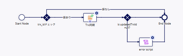 Even though pv!targetTrxId has a value and the sync appears to be successful, the flow still proceeds to "error script".(pv!updatedTrxId is null…)Why is this happening?