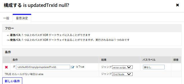 1. Save the value of "Data" > "Outputs" > "Results" > "Records Updated" into pv!updatedTrxId.2. In the subsequent XOR gateway, I check:
