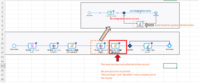 However, the value in the external database was updated correctly, and no error notification email was sent.Therefore, I believe no integration error occurred during the "Call Integration Smart Service."