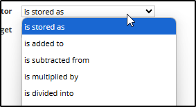 These, of course, overwrite the PV value with the result of applying the expression's output to the pv's current value considering the selected operator. I've never really used these, though, as it's easier to control (and understand) the resulting output by simply doing the operation you want in the expression editor box. AFAIK all of these can be simply done by using different expression operations, meaning we pretty much only ever (routinely) need "stored as".