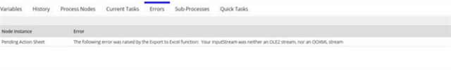 We do have a process model in place; however, we encountered an error while working with the Excel plugin.