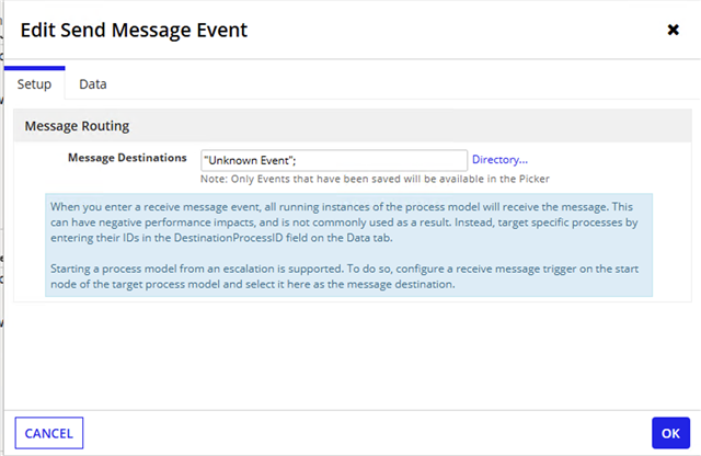 Regarding your message event issue, it appears that the Receive Message Event you selected is not available in the specified process ID. Please verify.