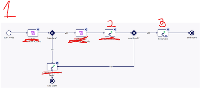 My question is, if the subprocess depth limit is 100, the main process as count 1 in the process depth counter, the next start process smart service as 2, and the recursion as 3. Shouldn't it run only around 50 times? I checked logs and the process run 100 times, before getting an error in Node 2 in the screenshot. I think my calculation is just wrong but I need clarifications on how is this calculated.