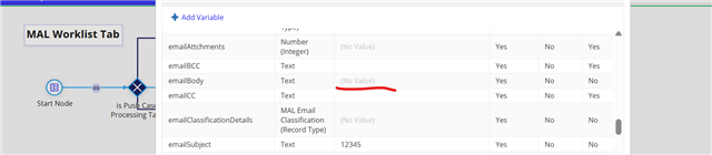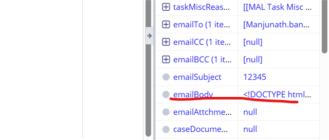 Hi Team, I am starting the process model by triggering us start form, once a user click submit button in the interface ideally all the role input data should be transferred to process variables. But in my scenario one of the Rule input data is not transferring to the process,When is the click a submit button the data is getting saved in a role input properly ri: emailBody(Text)But the same data is not being transferred to the process model please refer the images below pv: emailBody(Text)
