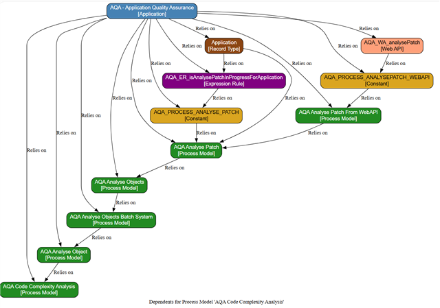 I am currently working on an App that unpacks an exported Application, writes the details of each object and the objects that each references and then allows you to generate a Graph file for a selected Object for either its Precedents or its Dependents. Here is an example of each for a selected Process Model: