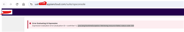 We are facing an issue while Deploying an RPA task to UAT Environment(Attaching screenshot). And also in the UAT environment on open of an Operation Console we retrieved java.lang.RuntimeException: Retrieving resource failed, status code: 500. Because of this the deployment errors out?