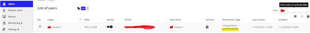 Added RPA task's Permission tag for the user