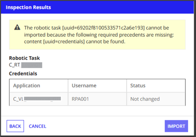 We have a robotic subtask with a credential-type parameter, and when exporting and importing it into the target environment, I get the following error: