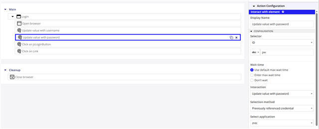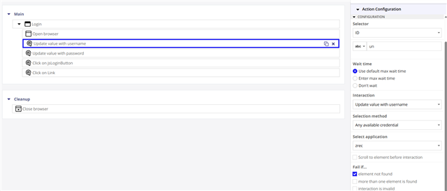 When I start Testing the RPA running and opening the url in the browser, but Username and password are not set