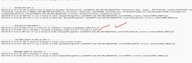 In the development environment I have installed two plugins Google Maps Connected System and GoogleMaps (the latter gives me the map and direction fields components). When making the transition to the UAT environment, only the Google Maps Connected System was deployed correctly, however the second plugin was not, I checked the logs and did not see any errors, could you help me.
