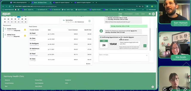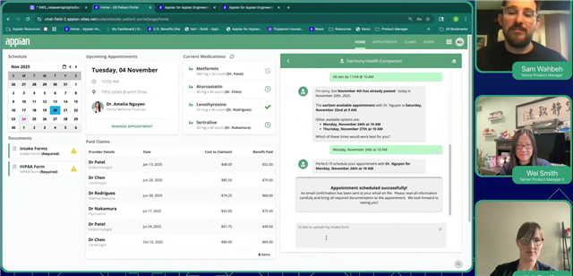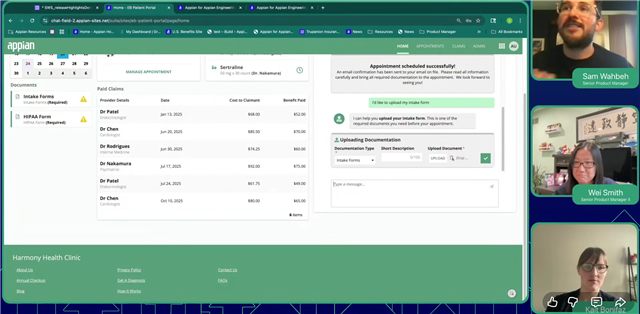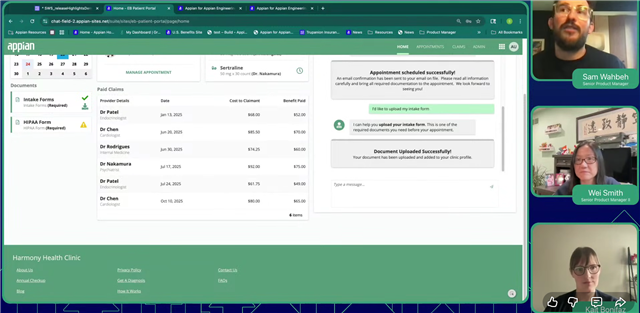 i have uploaded images in sequence from video, in which the responses in start are just texts and later based on responses the appointment confirmation and upload intake forms are configurable card layouts.