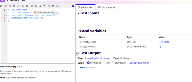 Hi everyone, do we have any workaround to check for an Appian record which is null(does not have any key)? One way is check for a!keys and then check if empty, any other way?