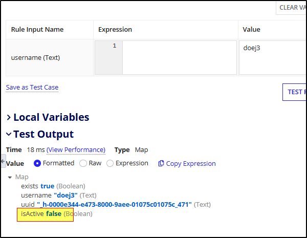 in version 24.4 isuseractive function is not available, is there any other way to achieve this? I just want to validate if user is acitve or deactivated or even if doesn't exist anymore in the system, we are trying to validate the scenario if for any reason the user saved in DB was deactived or deleted from the system, cause currently we are saving the result of calling the funcion loggedInUser() in DB, this is storing a text value, however we have the requirement to display the fisrtName and lastName of the user in the frontend, therefore we would like to catch the invalid user exception assuming the user was deactivated, since we don't have a try-catch similiar function in version 24.4, we want to know if there is any other way to catch the exception or change the approach following your recomendations. Any help will be greatly appreciated, thanks and regards!
