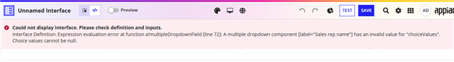 In the given code, I noticed that the local variables you created are not wrapped inside the localVariable() function. Additionally, the local variable: salesReps contains null values, which is causing an error. Please add proper null handling and check this after making the changes.